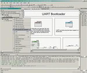 Następnie do projektu należy dołączyć aplikację bootloadera. Kody źródłowe i pliki hex oraz elf znajdują się w przykładowych projektach do pobrania na stronie zestawu znajdującej się pod adresem http://goo.gl/3r6Ozv. W celu przygotowania bootloadera UART (UART_Bootloader.cydsn) jest konieczne ustawienie jego projektu jako domyślnego, jak na rysunku 6 oraz skompilowanie źródła (rysunek 7). Aby łatwiej poruszać się w gąszczu katalogów projektu, najwygodniej przekopiować projekt bootloadera do katalogu własnego projektu. Jeżeli wszystko przebiegło bez problemów, aplikacja jest gotowa do użycia bootloadera UART.