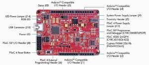 Złącza rozszerzeń zestawu zgodne są mechanicznie z Arduino, co umożliwia użycie szerokiej gamy dostępnych płytek rozszerzeń. Cieszy też fakt wpisania się firmy Cypress w trend innych producentów układów uruchomieniowych i dostarczenie kompletnego zestawu PSoC 4000 Pionier Kit w cenie 30 dolarów, co ma ogromne znaczenie dla budżetu konstruktora - elektronika.