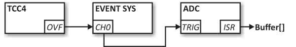 EVSYS.CH0MUX = EVSYS_CHMUX_TCC4_OVF_gc;