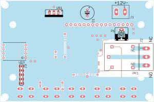 Układ został zmontowany na dwustronnej płytce drukowanej o wymiarach 90×60 mm, a wzór ścieżek oraz schemat montażowy ilustrują rysunek 3 i rysunek 4. W odległości 3 mm od krawędzi płytki znalazły się otwory montażowe.
