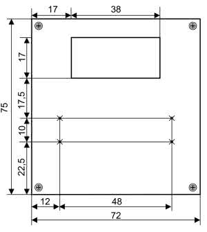 Na rysunku 4 pokazano rozmieszczenie wyświetlaczy i przycisków, co ułatwi wykonanie płyty czołowej do obudowy. Wysokość cyfr na wyświetlaczach wynosi 0,52” (13,2 mm).