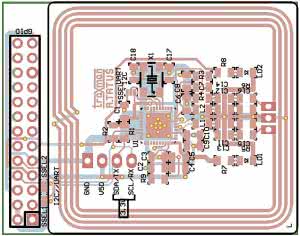 Układ zmontowano na niewielkiej, dwustronnej płytce drukowanej. Jej schemat montażowy pokazano na rysunku 3. Montaż nie wymaga opisu, należy tylko zwrócić uwagę na prawidłowe przylutowanie pada termicznego U1 oraz odpowiednie wlutowanie zwór SSEL/SSEL1/SSEL2 w zależności od używanego interfejsu komunikacyjnego (domyślnie UART).