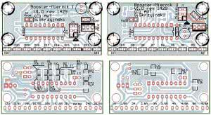 Jako pierwsze zalecam wlutować diody świecące, co umożliwi ich równe ułożenie. Warto użyć diod LED w obudowach prostokątnych - taka linijka po prostu lepiej wygląda, ale nie ma przymusu. Następnie należy wlutować elementy SMD, później przewlekane. Rozmieszczenie sygnałów na złączach J1 i J4 umożliwia połączenie obu mierników jedną taśmą z boosterem.