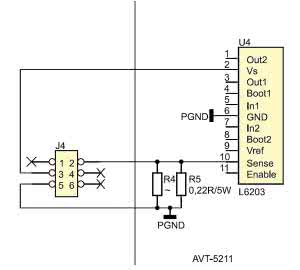 Masę i przewód pomiaru prądu najlepiej wlutować w miejsce rezystora R4 lub R5, ponieważ najczęściej znajduje się tam jeden rezystor. Przewód zasilający, będący również przewodem pomiaru napięcia, najłatwiej przylutować do nóżki 2 układu L6202. Zworki J2 i J3 umożliwiają wybór pracy linijki LED (rozwarta - punkt, zwarta - linijka).