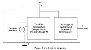 Układ jest oparty o przetwornik ciśnienie/napięcie typu MPX5700 firmy Freescale, którego schemat blokowy pokazano na rysunku 1. Wyjściowy sygnał napięciowy przetwornika jest już skompensowany temperaturowo i skalibrowany, co znacząco upraszcza konstrukcję wskaźnika.