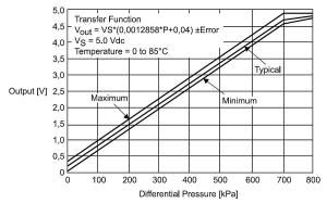 Oprócz przeliczenia napięcia wyjściowego konieczne jest także skompensowanie przesunięcia (offsetu). Przetworniki MPX mają dokładnie skalibrowaną funkcję przenoszenia, ale niestety nie mają kompensacji przesunięcia i każdorazowo, w zależności od egzemplarza, należy ją uwzględnić w wyniku pomiaru (rysunek 2).