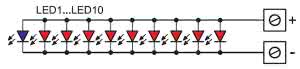 Proponowana choinka jest tym bardziej wyjątkowa, że jest może ją wykonać naprawdę każdy. Do jej montażu nie potrzeba żadnych specjalnych umiejętności, co więcej - nie został w niej zastosowany nawet jeden układ scalony (rysunek 1). Montaż sprowadza się do wlutowania 10 migających diod LED, a uruchomienie do dołączenia zasilania w postaci dwóch baterii AA. Dla ułatwienia, schemat montażowy choinki pokazano na rysunku 2.