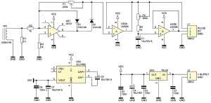 Napięcie zasilające moduł jest stabilizowane przez układ LM78L09. Ujemnego napięcia dostarcza pompa ładunkowa o oznaczeniu ICL7660. Dzięki wytworzeniu zasilania dwubiegunowego, możliwa jest poprawna praca układu różnicowego znajdującego się na wejściu układu OP07.