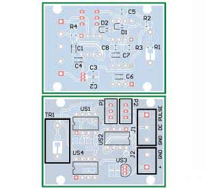 Moduł został zmontowany na jednostronnej płytce drukowanej o wymiarach 51 mm×37 mm, której schemat montażowy pokazano na rysunku 3. Układ US2 zaleca się zamontować na podstawce, ponieważ może ulec uszkodzeniu wskutek przypadkowego zwarcia któregokolwiek wyjścia z masą. Prawidłowo zmontowany moduł jest gotowy do przyłączenia zasilania z zakresu tolerowanego przez 78L09, czyli ok. 11...35 V.