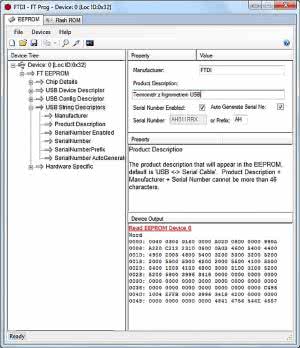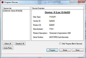 Po włożeniu przystawki do komputera urządzenie będzie się przedstawiało jako przejściówka USB/RS232. Aby zmienić domyślną nazwę urządzenia należy zapisać ją w pamięci EEPROM układu FT232. W tym celu należy pobrać, zainstalować i uruchomić program "FT prog". Po włożeniu przystawki do komputera należy zainstalować sterowniki.