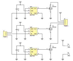 Wzmacniacz jest złożony z trzech identycznych bloków funkcjonalnych, z których każdy zawiera: układ scalony MCP1401, kondensator ceramiczny o pojemności 1 mF, tranzystor MOSFET-N typu IRF7201.