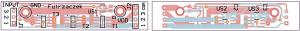 Układ został zmontowano na dwustronnej płytce drukowanej o wymiarach 63 mm×12 mm, której schemat montażowy zamieszczono na rysunku 2. Elementy zostały umieszczone po obu stronach płytki. W układzie prototypowym, jako J1 i J2 zostały wlutowane męskie złącza szpilkowe, które umożliwiają wygodne przylutowanie przewodów lub wetknięcie złącz.