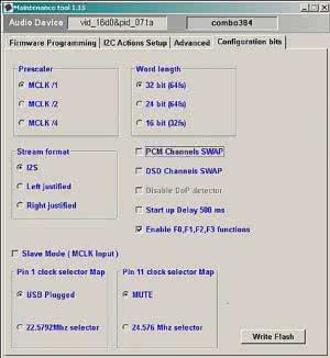 Następnie, za pomocą oprogramowania Oemtool (www.amanero. com\Oemtool115.zip) należy aktywować obwód wyciszania i sygnalizacji fs oraz ustawić sygnał wyjściowy w standardzie I²S (rysunek 4). Domyślna wersja oprogramowania modułu to 1.080 i nie należy jej zmieniać.