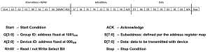 Do poprawnej pracy U1 konieczna jest jednorazowa konfiguracja parametrów. Układ dostępny jest na magistrali I²C pod adresem 48h (uwaga: adres identyczny z ładowarką superkondensatorów ZSPM4523; jest mało prawdopodobne, że układy będą współpracowały razem w jednym urządzeniu, ale warto o tym pamiętać). Sposób zapisu rejestrów przedstawia rysunek 2.