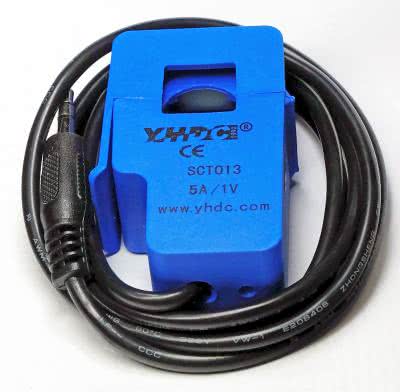 Każda z metod pomiaru prądu ma swoje wady i zalety. Najtańszy jest pomiar spadku napięcia na rezystorze pomiarowym, lecz wymaga to ingerencji w obwód pobierający prąd. Podobnie sytuacja wygląda w nowoczesnych czujnikach typu ACSxx, które dodatkowo są czułe na obce pola magnetyczne. Najłatwiej przy zachowaniu rozsądnych kosztów mierzyć prąd przemienny przekładnikiem prądowym. Stosując przekładnik z otwieranym obwodem magnetycznym, montaż sprowadza się do założenia go na przewód. Dodatkową zaletą jest separacja galwaniczna obwodu pomiarowego. Do pomiaru prądu wykorzystany jest typowy przekładnik SCT-013-xxx, który w zależności od typu umożliwia pomiar prądu w zakresie 5…60 A, skalując go do wartości 0…1 V na wbudowanym rezystorze pomiarowym. Wygląd przekładnika SCT-013-005 (0…5 A) pokazano na fotografii 1.