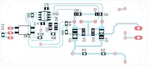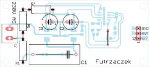 Układ precyzyjnego detektora został zmontowany na jednostronnej płytce drukowanej o wymiarach 78×53 mm, której schemat montażowy oraz wzór ścieżek przedstawiają rysunki 2 i 3.