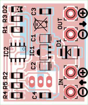 Moduł należy zmontować na płytce drukowanej o wymiarach 31×26 mm, której schemat pokazano na rysunkach 2 i 3.