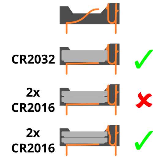 - zasilanie napięciem z przedziału 3…6 V – bateria CR2032 lub 2 sztuki CR2016,