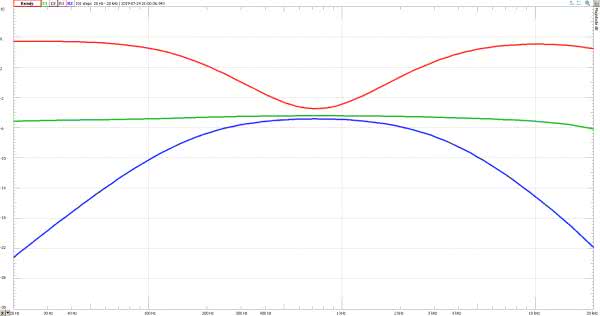Opisany regulator nie ma aspiracji do Hi-End, ale i tak może znaleźć wiele zastosowań. Dla sprawdzenia parametrów wykonano pomiary przy pomocy Analog Discovery 2. Przykładowe charakterystyki częstotliwościowe dla skrajnych i środkowego położenia potencjometrów LOW i HIGH pokazano na rysunku 4.