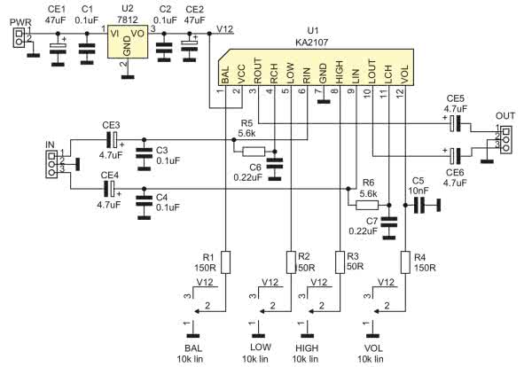- U1: KA2107 SIL12 U2: 7812 TO220