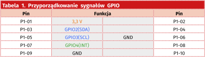 Płytka jest zgodna z każdą wersją Raspberry Pi, ale mechanicznie dopasowana jest do Pi Zero, tworząc z nim zgrany zestaw o niewielkich rozmiarach. Sygnały na złączu GPIO, których używa moduł, zestawiono w tabeli 1.