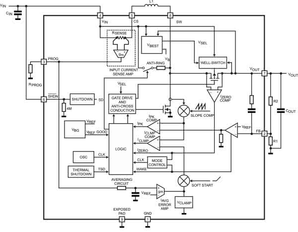 Schemat ładowarki superkondensatorów został pokazany na rysunku 2. Układ bazuje na sterowniku przetwornicy podwyższającej LTC3125 z ograniczeniem prądu wejściowego. Schemat wewnętrzny układu został pokazany na rysunku 3. Ładowarka współpracuje z kondensatorem VLCRS3R0406MG firmy VINATECH, o pojemności 40 F i maksymalnym napięciu pracy 3,8 V, napięciu rozładowania 2,2 V w zakresie temperatur –30...+70°C. Kondensator może pracować w szerszym zakresie temperatur –30...+85°C, lecz należy odpowiednio skorygować napięcia pracy na 3,6 V i rozładowania na 2,5 V. Rezystancja wewnętrzna kondensatora nie przekracza 125 mV, a tolerancja pojemności wynosi ±10%.