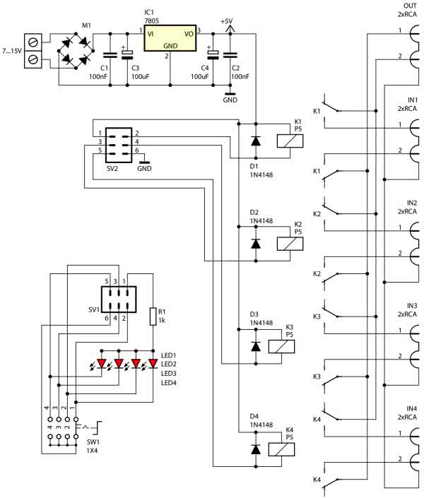 Urządzenie służy do przełączania czterech sygnałów audio do jednego wyjścia. Doskonale sprawdzi się jako selektor wejść do wzmacniacza. Zastosowanie miniaturowych przekaźników jako elementów przełączających gwarantuje, że parametry sygnałów, jak amplituda czy pasmo, pozostaną niezmienione.