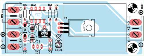 Moduł należy zmontować na płytce drukowanej, której schemat montażowy pokazano na rysunku 2.