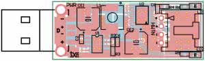Układ został zmontowany na niewielkiej dwustronnej płytce drukowanej, której schemat wraz z rozmieszczeniem elementów został pokazany na rysunku 2 i rysunku 3.