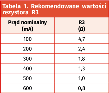 Moduł wymaga uruchomienia i dostrojenia pod posiadany typ wentylatora. W pierwszej kolejności dobieramy zgodnie z tabelą 1, wartość rezystora pomiarowego R3 odpowiadającą znamionowemu prądowi wentylatora.