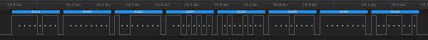 Następnie mamy dwa bajty nazwane Sensor Data Type o wartościach 0x00, 0x03. Są to bajty przypisane do typu czujnika i właśnie dla czujników napięcia zawierać się one mogą w zakresie 0x0300 do 0x030F. Dla czujników prądu zakres ten wynosi 0x0200 do 0x020F. Zakresy można znaleźć w dokumentacji OpenTX. Jeśli mamy podłączony tylko jeden czujnik napięcia, to będzie on zwracał wartość 0x0300. Zwróćmy uwagę, że najpierw jest wysyłany młodszy bajt, a następnie starszy. Kolejny bajt o wartości 0x20 zawiera dwie ważne informacje. Podzielmy go na dwa półbajty. Starszy półbajt mówi nam o ilości cel w pakiecie zasilającym który mierzymy, drugi półbajt mówi nam o numerach dwóch cel pakietu które są zmierzone w aktualnej ramce – ale uwaga – liczone od 0! Każda bowiem ramka zawsze zawiera napięcie dwóch cel. W tym konkretnym przypadku mamy pakiet 2S, zaś 0 oznacza, że ramka zawiera napięcie pierwszych dwóch cel pakietu.