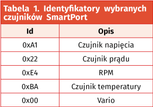 - pracuje z aparaturą firmy FrSky, komunikuje się poprzez SmartPort,