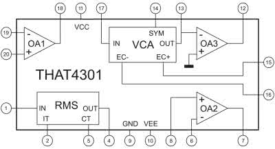 W urządzeniu zastosowano specjalizowany układ serii THAT Analog Engine typu THAT4301, który zawiera wszystkie niezbędne do obróbki sygnału bloki funkcjonalne. Struktura wewnętrzna układu została pokazana na rysunku 1.