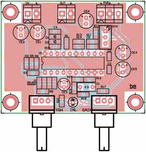 Wzmacniacz OA1 pracuje jako wzmacniacz progowy o ustalanym potencjometrem TRH progu zadziałania. Rezystory R7 i R8 ustalają offset progu na –40 dB, a potencjometr TRH umożliwia jego zmianę o ±10 dB poprzez sumowanie w układzie wzmacniacza OA2 sygnału detektora progowego i napięcia z potencjometru GAIN. Potencjometrem GAIN możliwe jest ustalenie wzmocnienia toru w zakresie ±20 dB. Wzmacniacz OA3 konwertuje wyjściowy sygnał prądowy z VCA na napięcie doprowadzone do wyjścia OUT. Potencjometrem SYM możliwe jest ustawienie minimalnych zniekształceń sygnału wyjściowego.