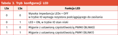 Dla sterowania wyjściami z diodami LED (LED7...4) wystarczająca jest ich odpowiednia konfiguracja w rejestrze LS1, tabela 3. Przypisanie diod LED do rejestrów LS jest następujące: