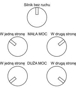 Właśnie do realizacji tego typu sterowania służy opisany układ. Operator trzyma w dłoni tylko jeden element, jakim jest pokrętło potencjometru, a elektronika odpowiada za zmianę kierunku obrotów silnika oraz jego przyspieszanie i zwalnianie. Zasadę działania tego układu, a dokładniej sposób reagowania na kąt obrotu osi potencjometru, pokazano na rysunku 1.