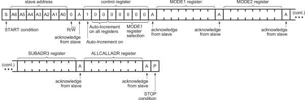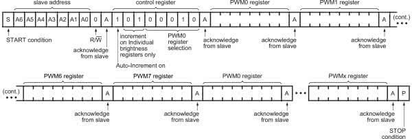 Ostatnim sposobem jest adresowanie grupowe rejestrów PWM po wcześniejszej konfiguracji układu zgodnie z rysunkiem 5.