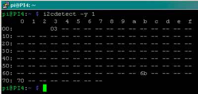 Po zainstalowaniu i restarcie, w pierwszej kolejności sprawdzamy w konsoli prawidłowe działanie I2C, wpisując polecenie: