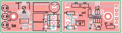 Stroboskop zmontowany jest na dwustronnej płytce drukowanej, której schemat został pokazany na rysunku 2. Sposób montażu jest klasyczny i nie wymaga opisu.
