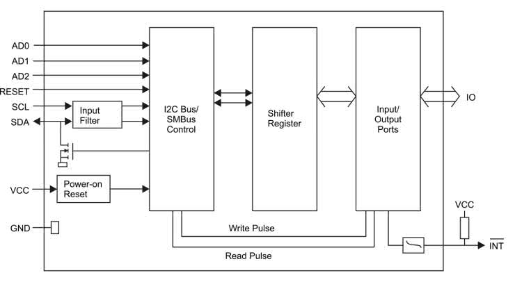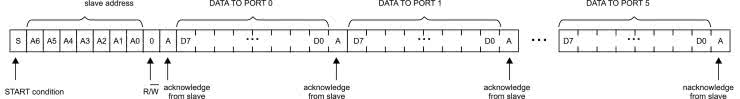 Liczba wysyłanych bajtów nie jest ograniczona, ale po każdych sześciu układ nadpisuje wcześniejsze dane. Należy zwrócić na to uwagę podczas obsługi magistrali I²C. Wyprowadzenia wyjściowe GPIO posiadają aktywne podczas zmiany stanu na wysoki układy podciągania, które umożliwiają poprawę szybkości narastania zboczy, w przypadku dużego obciążenia GPIO.
