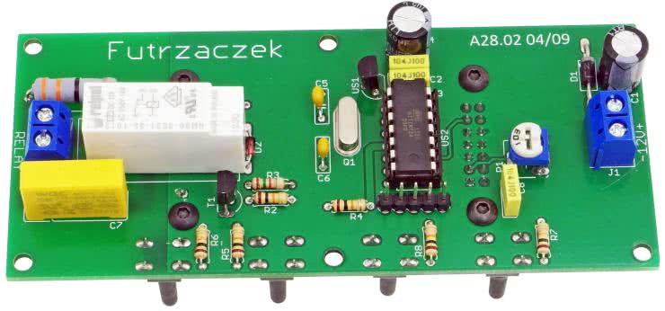 Poprawnie zaprogramowany układ jest gotowy do działania po ustawieniu kontrastu wyświetlacza potencjometrem P1. Do zasilania powinno służyć napięcie stałe o wartości około 12 V, a dokładniej z przedziału 9…20 V. Takie granice uwzględniają zakres prawidłowej pracy samego przekaźnika (ze spadkiem napięcia na diodzie D1 i tranzystorze T1) w temperaturze 20ºC oraz kondensatorów elektrolitycznych. Warto, aby owe napięcie było dobrze filtrowane z tętnień, a najlepiej stabilizowane. Pobór prądu przy 12 V wynosi około 15 mA przy zwartych stykach przekaźnika oraz około 35 mA, kiedy cewka zostanie załączona – wtedy odcinane jest zasilanie dla urządzenia. Dzięki temu układ przez większość czasu pracuje z wyłączonym przekaźnikiem, co sprzyja energooszczędności.