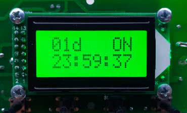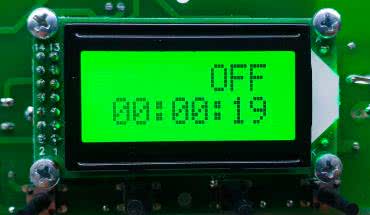 Widok ekranu w trakcie odliczania czasu działania jest na fotografii 2, zaś czasu wyłączenia na fotografii 3. W prawym górnym rogu widać aktualny stan urządzenia (ON/OFF) zasilanego poprzez wbudowany w układ przekaźnik. Na dole ekranu jest pozostały czas w formacie hh:mm:ss. Dodatkowo, na ekranie załączenia jest pokazywana również pozostała liczba dni (lewy górny róg). Po wciśnięciu przycisku ustawiania (S3 lub S4) pojawia się zadana ilość czasu do odmierzania oraz, dla odróżnienia od zwykłej pracy, literka „S” (od „set”) na górze ekranu.