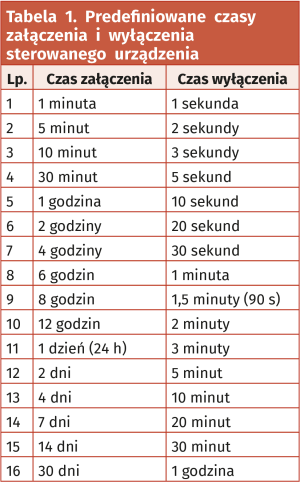- 16 czasów wyłączenia urządzenia: od 1 sekundy do 1 godziny,