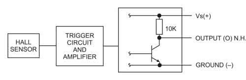 Zawiera on sensor wykorzystujący zjawisko Halla, układy wzmacniające i przełączające oraz wykonawczy tranzystor wyjściowy – rysunek 2. Dwustanowe wyjście tego układu potrafi przewodzić prąd, jak stwierdza nota katalogowa, o natężeniu nie większym niż 4 mA, zaś uszkodzenie tego elementu może nastąpić przy prądzie przekraczającym 8 mA.