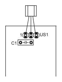 Montaż układu jest bardzo prosty i może się go podjąć nawet mało doświadczony użytkownik lutownicy. Proponuję zacząć od rezystorów, gdyż ich wysokość jest najmniejsza. Komentarza wymaga wlutowanie w płytkę czujnika US1 – jego obudowa powinna być ułożona ukośnie ściętymi krawędziami do góry, a nóżki zagięte pod kątem 90° tak, aby wystawał poza obrys płytki. Obrazuje to rysunek 4.