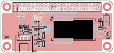 Układ zmontowany jest na dwustronnej płytce drukowanej zgodnej rozmiarami z RPi Zero, której schemat został pokazany na rysunku 2.