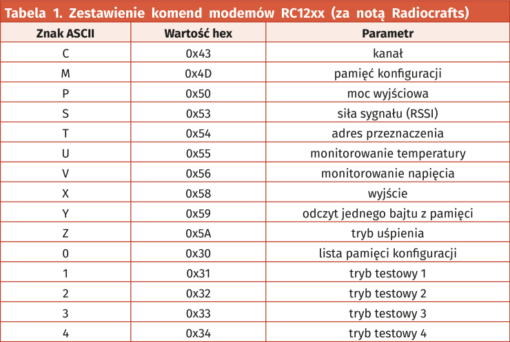 Algorytm konfiguracji pokazano na rysunku 3. Po prawidłowym ustawieniu stanu CFG, modem w terminalu zwróci znak zachęty „>” potwierdzając aktywny tryb konfiguracji i rozłączając zestawione wcześniej połączenie. Obsługiwane komendy zestawiono w tabeli 1.