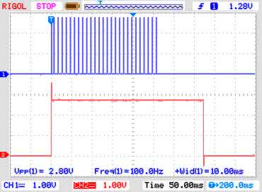 Przebiegi na wyjściach ACP(CH1), ACD (CH2) układu podczas pracy pokazano na rysunku 4. Próg ULVO można dobrać, zmieniając napięcie diod DZ1...DZ4, tak aby zapewnić odpowiedni tryb pracy transoptora MID400, ILED<0,15 mA. Przebieg na wyjściu ACD filtruje zaniki krótsze niż 100 ms, związane np. z zakłóceniami EMC, na które urządzenie powinno być odporne, zasilanie w tym czasie podtrzymują pojemności w zasilaczu urządzenia.