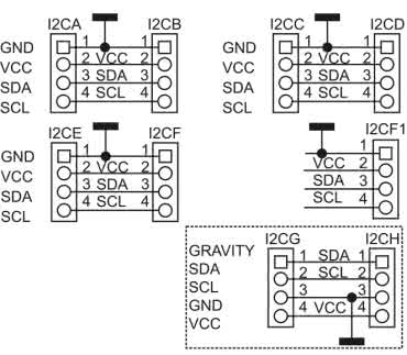 - I²CC, I²CG: złącze JST 2 mm