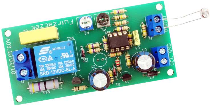 - załączanie przekaźnika elektromagnetycznego po detekcji oświetlenia o dostatecznym natężeniu i przedłużenie tego załączenia po zaniku oświetlenia,